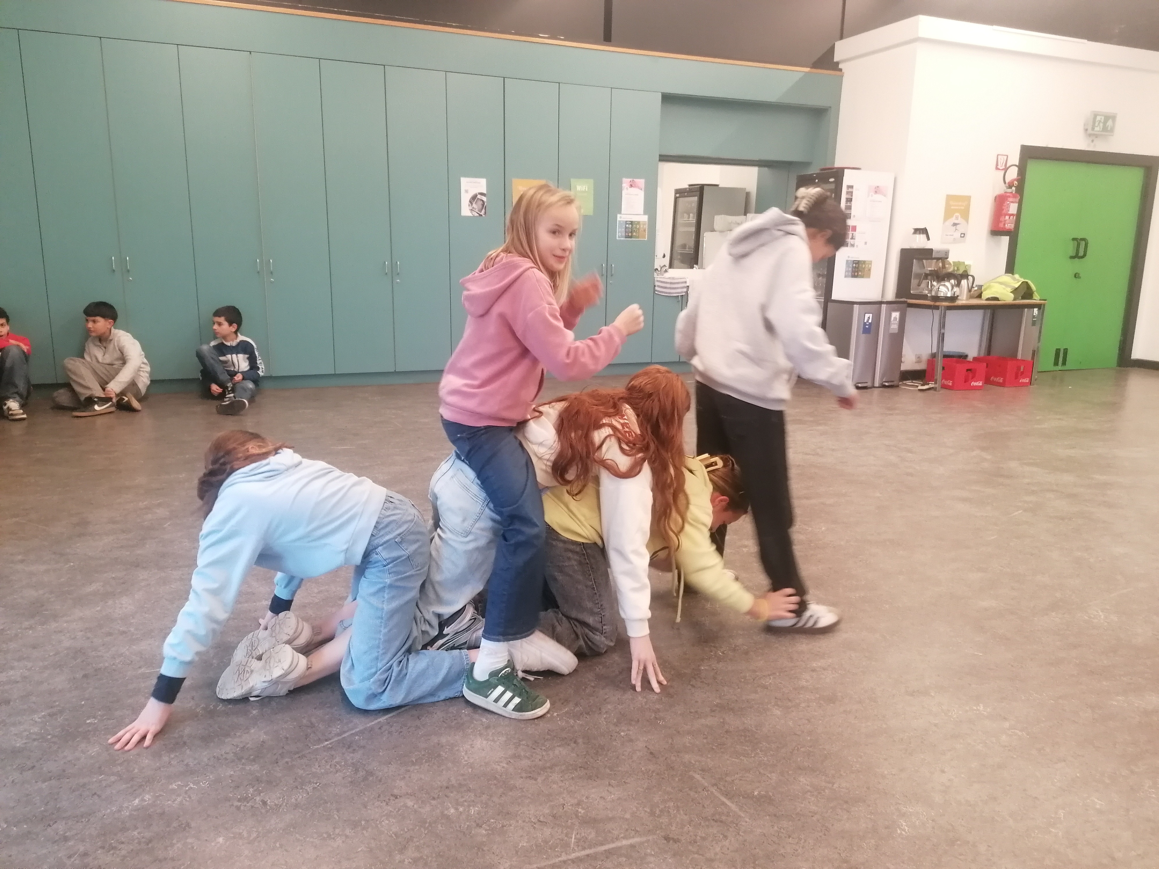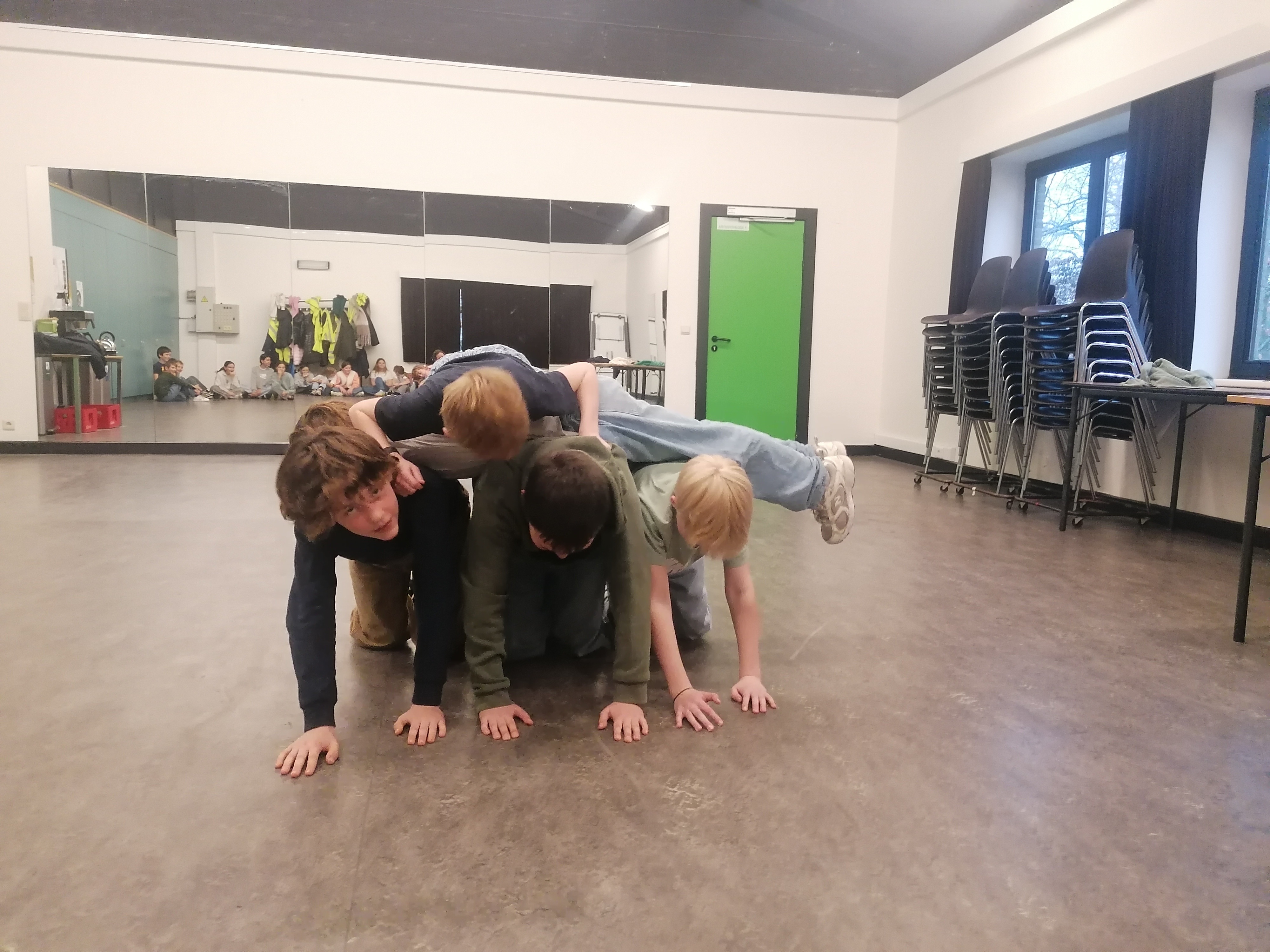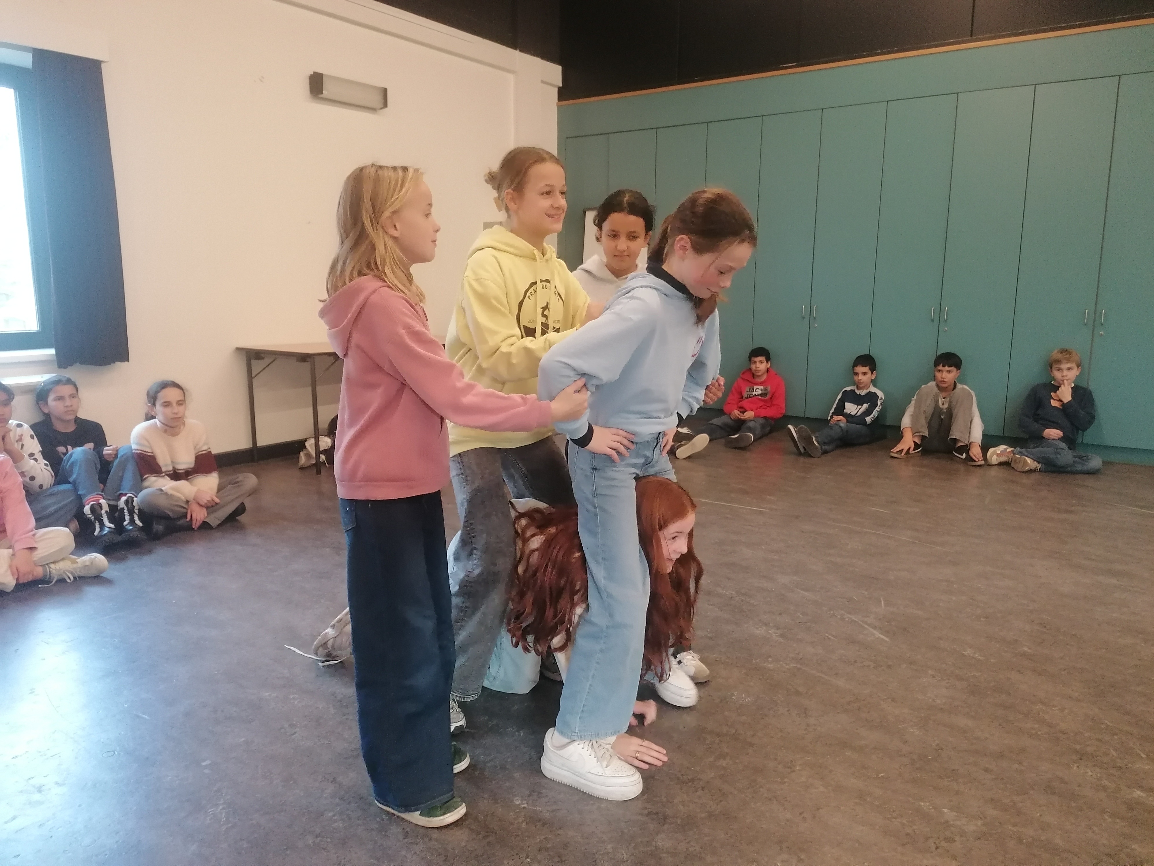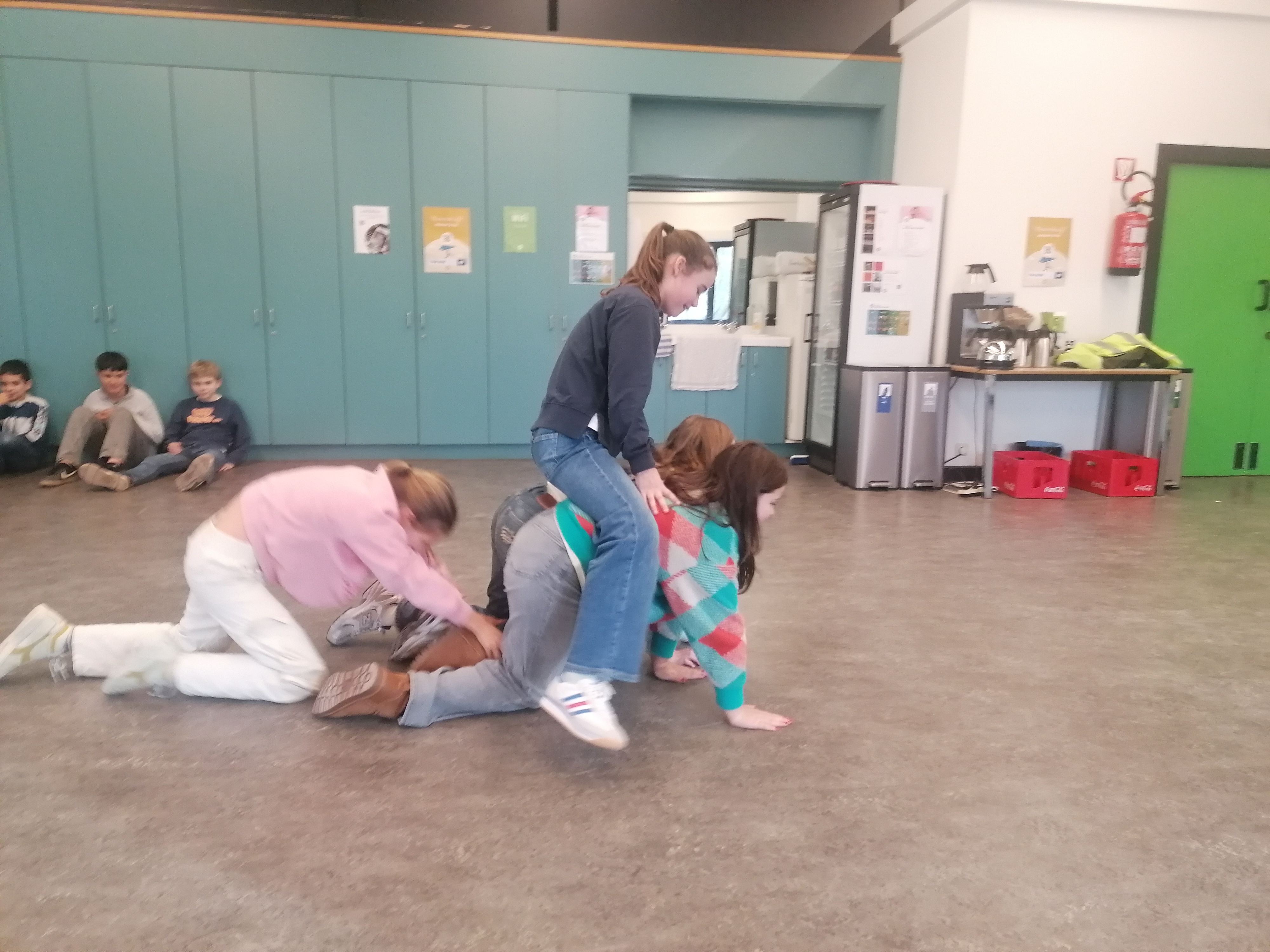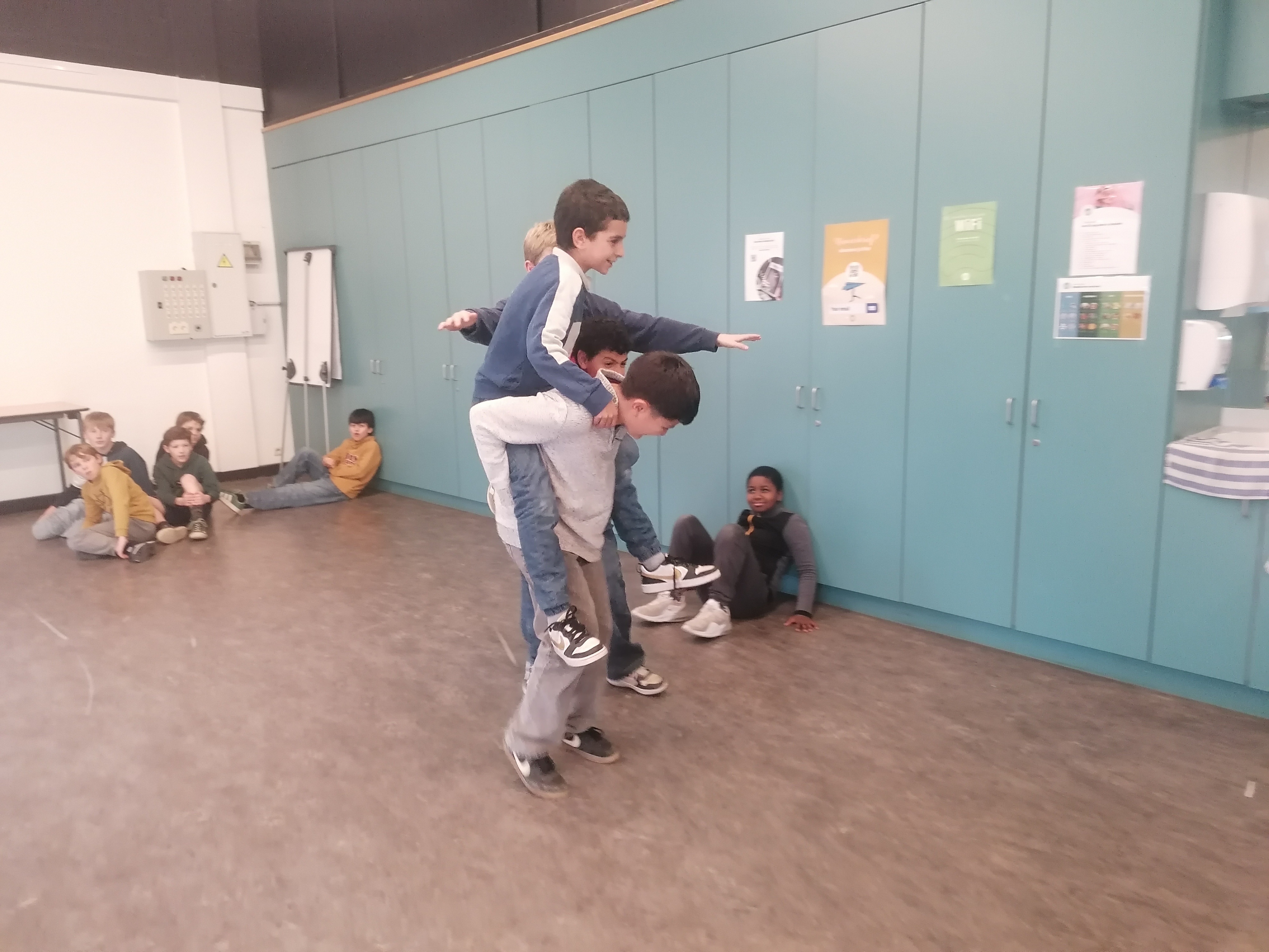 Tijdens de les drama kregen de leerlingen de opdracht om met hun groepje een voertuig te maken. Ze maakten vliegtuigen, tractors, auto's, zeilboten, driewielers, fietsen...