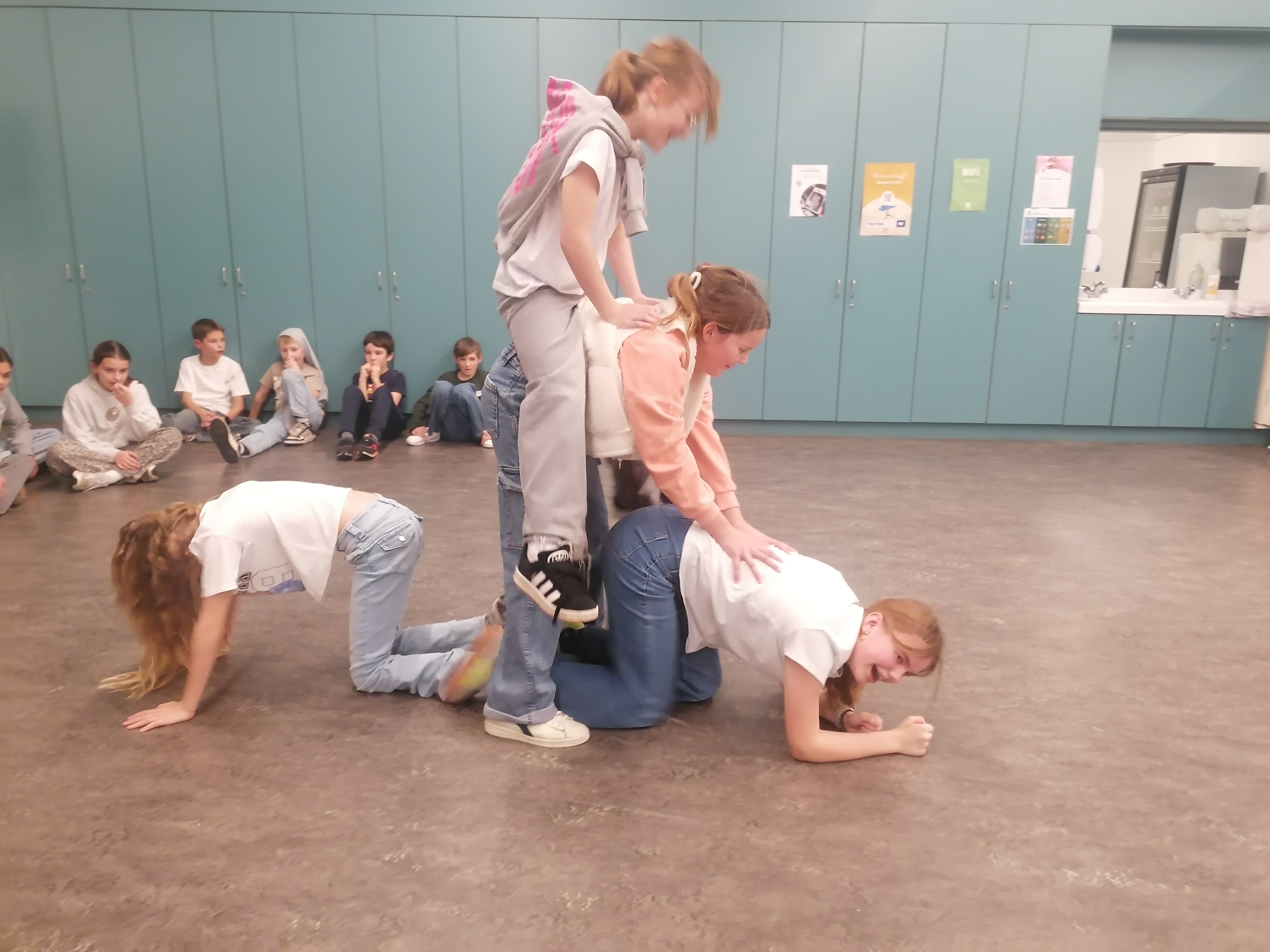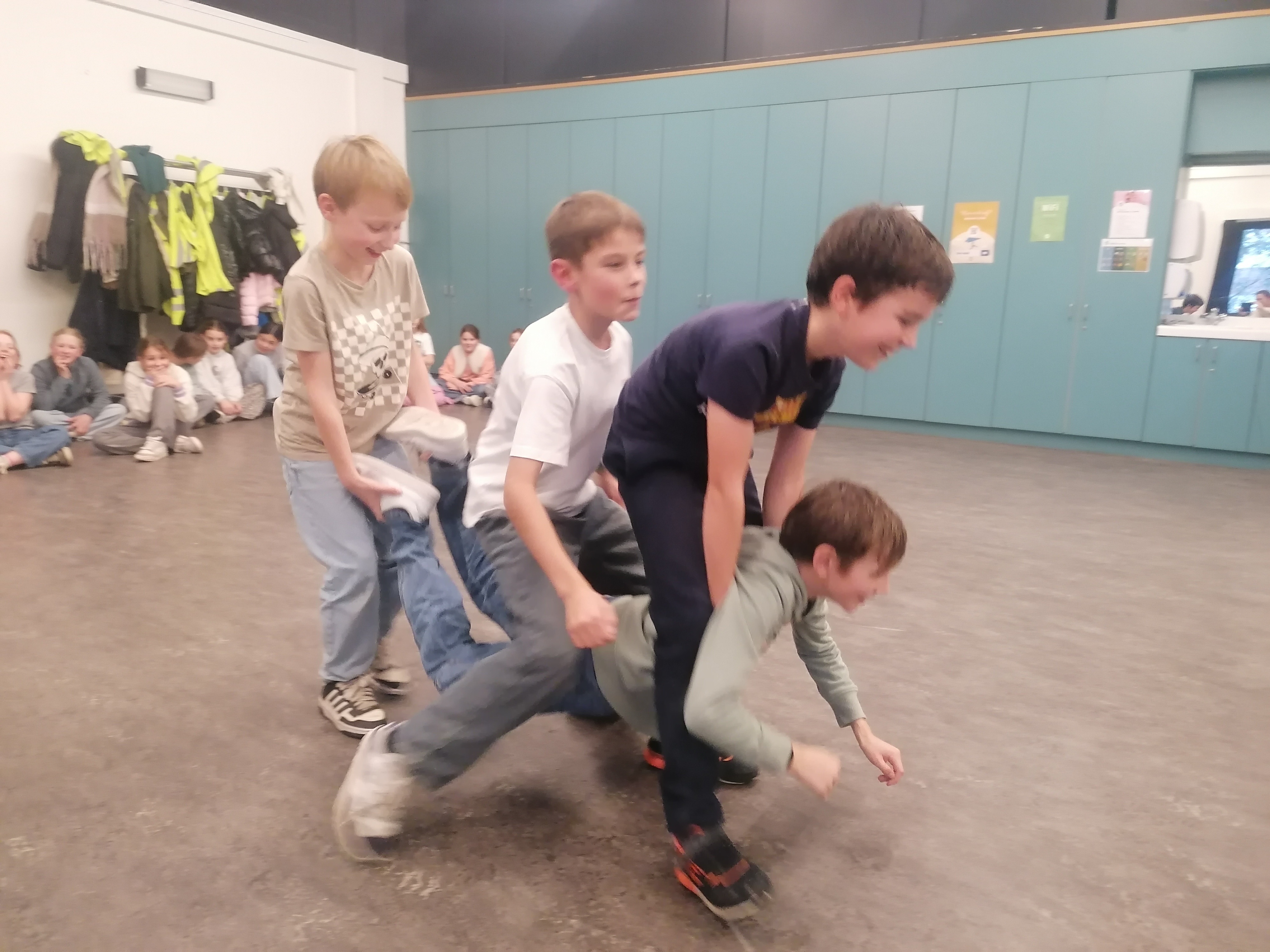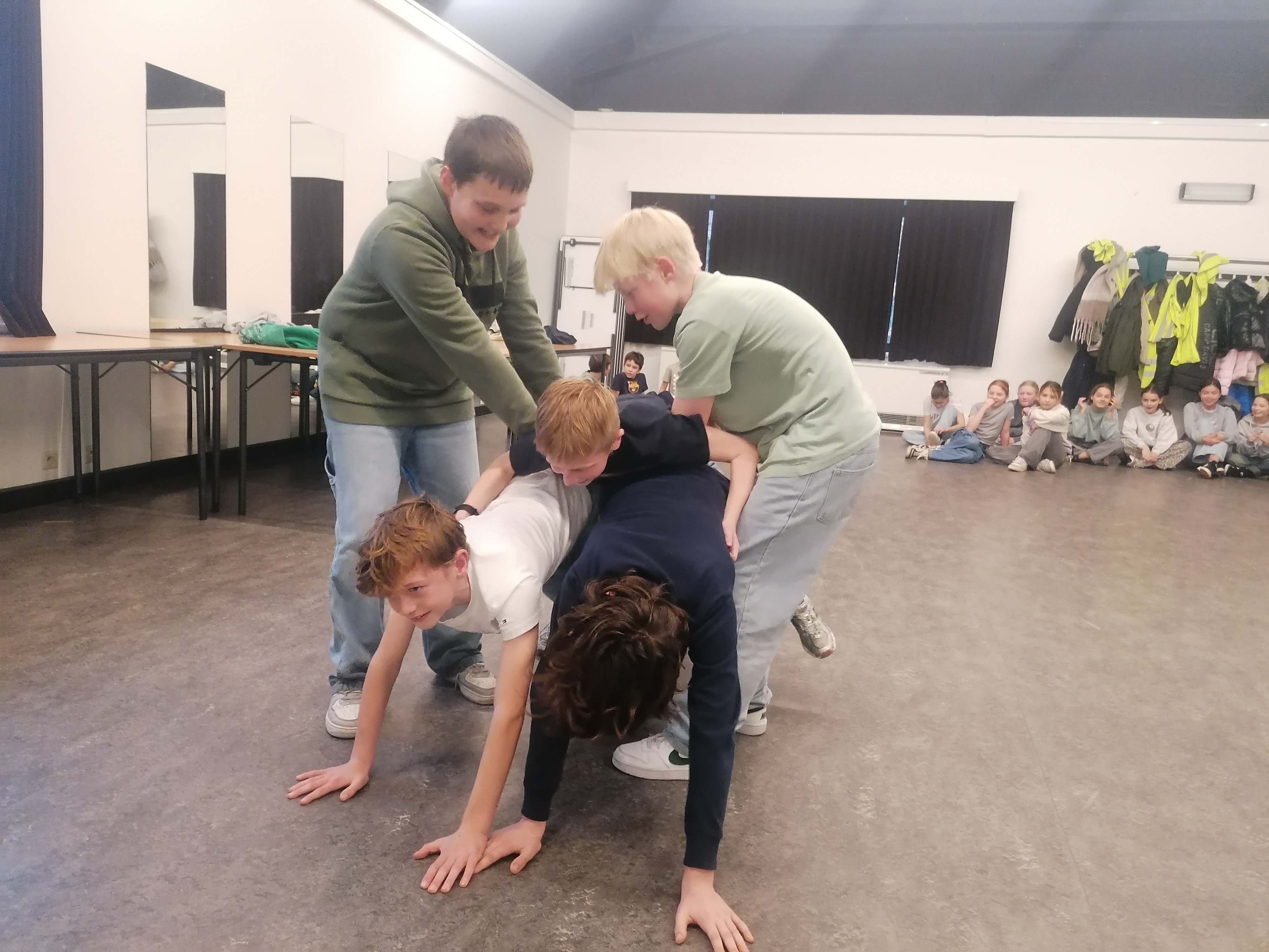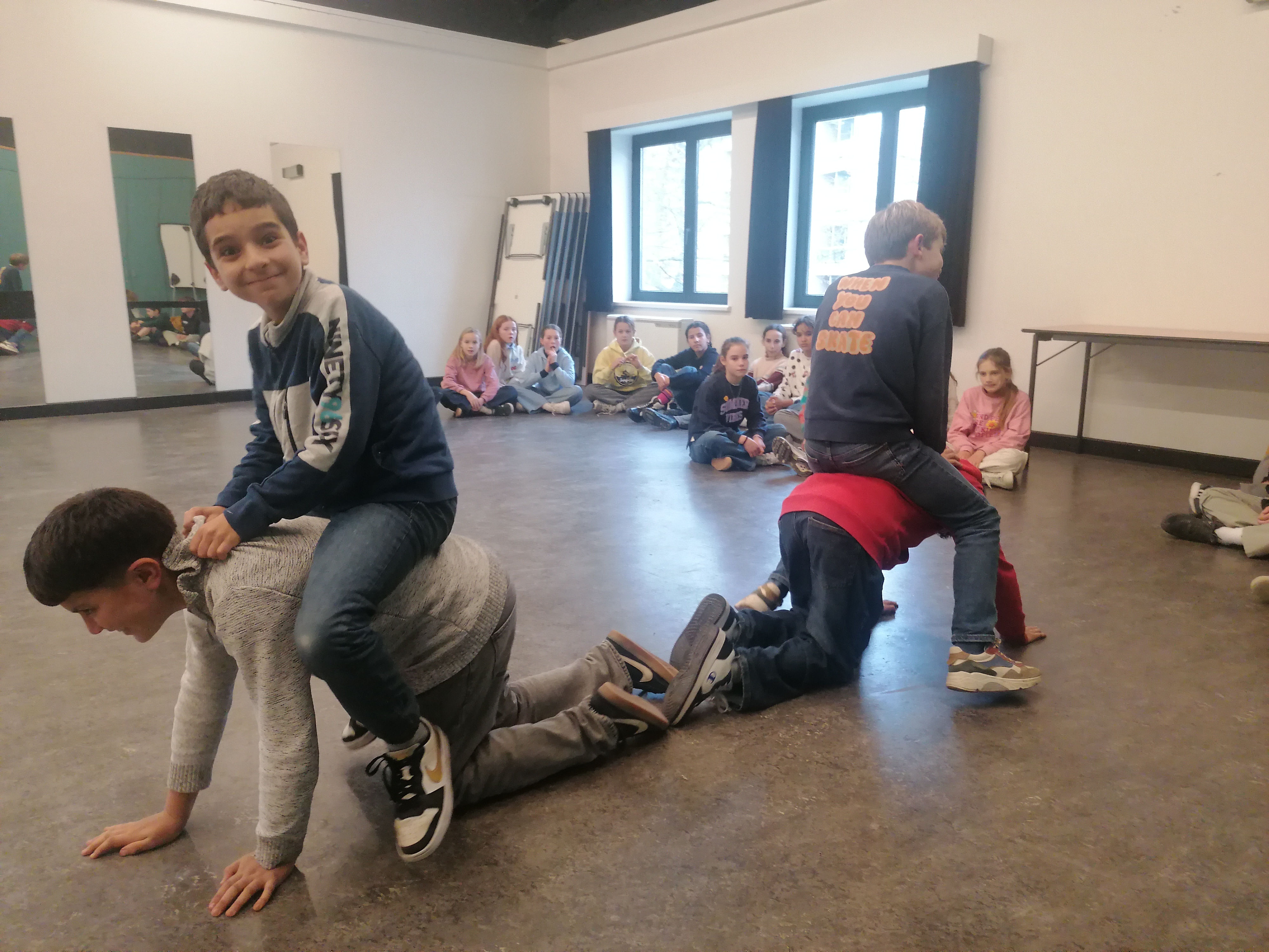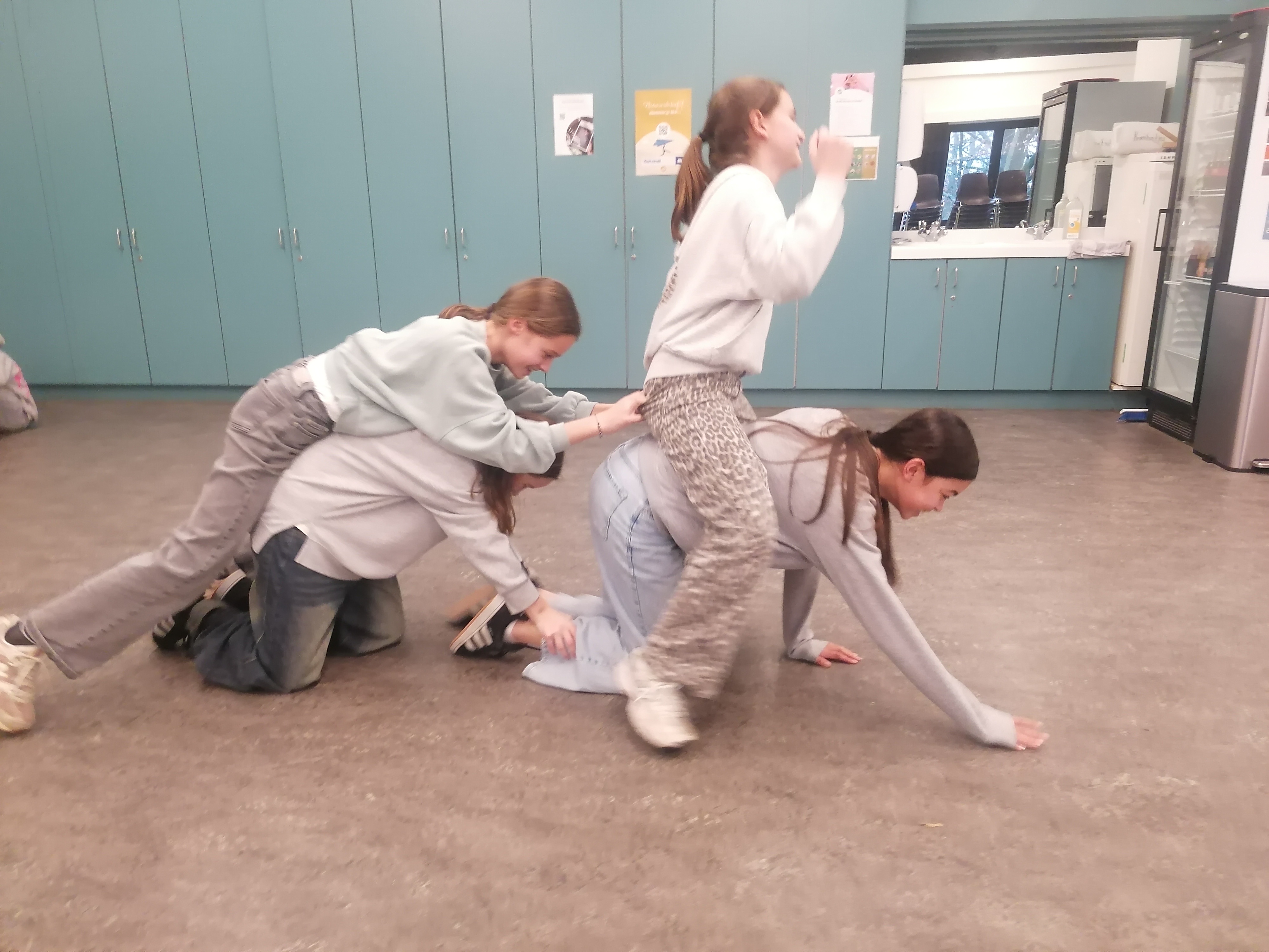 Tijdens de les drama kregen de leerlingen de opdracht om met hun groepje een voertuig te maken. Ze maakten vliegtuigen, tractors, auto's, zeilboten, driewielers, fietsen...