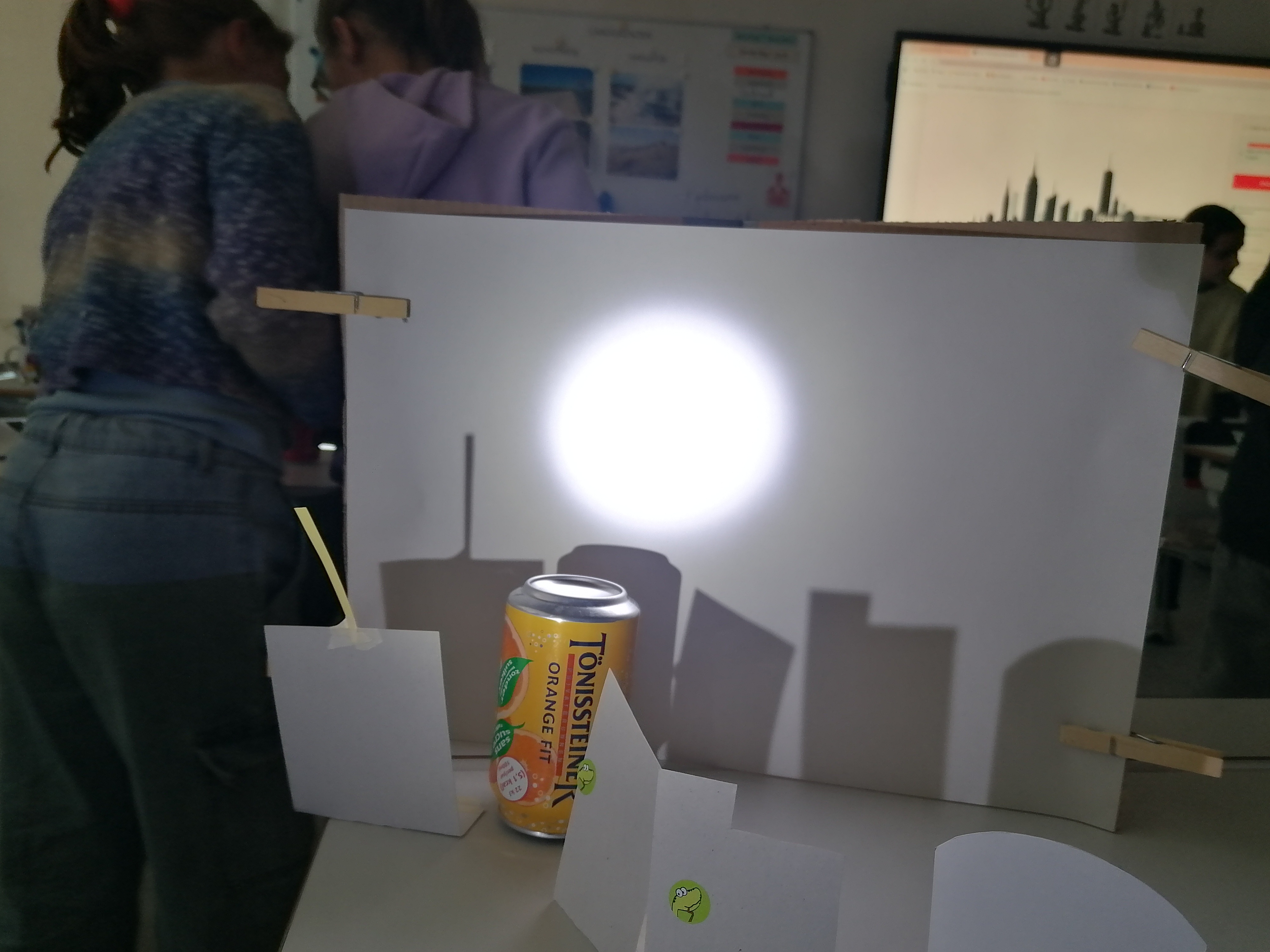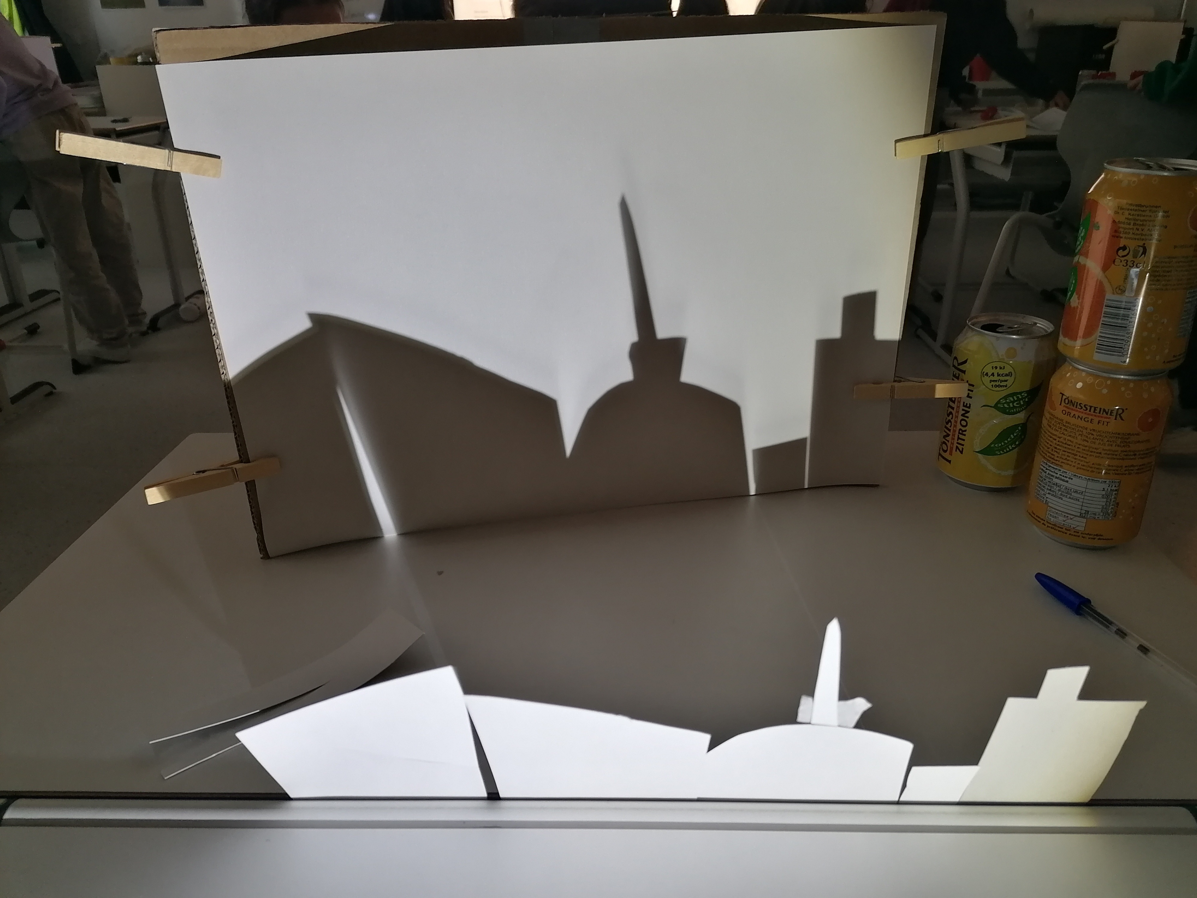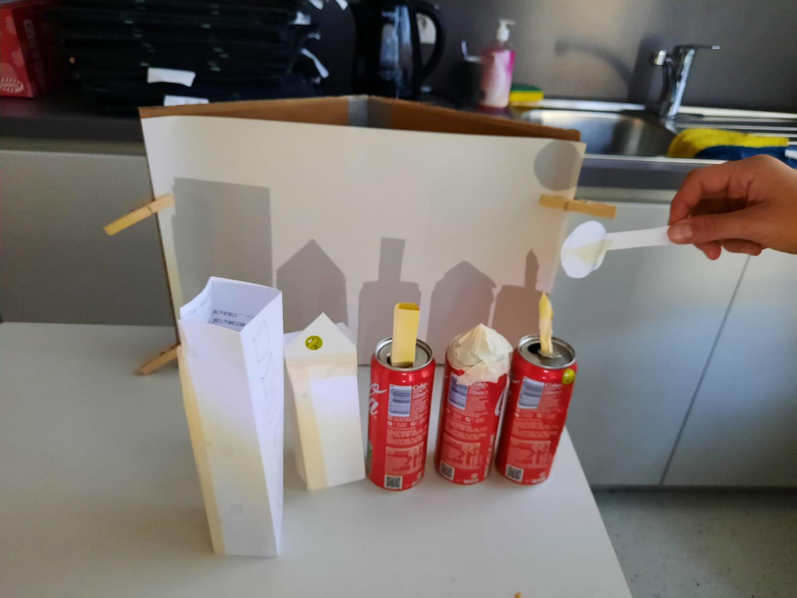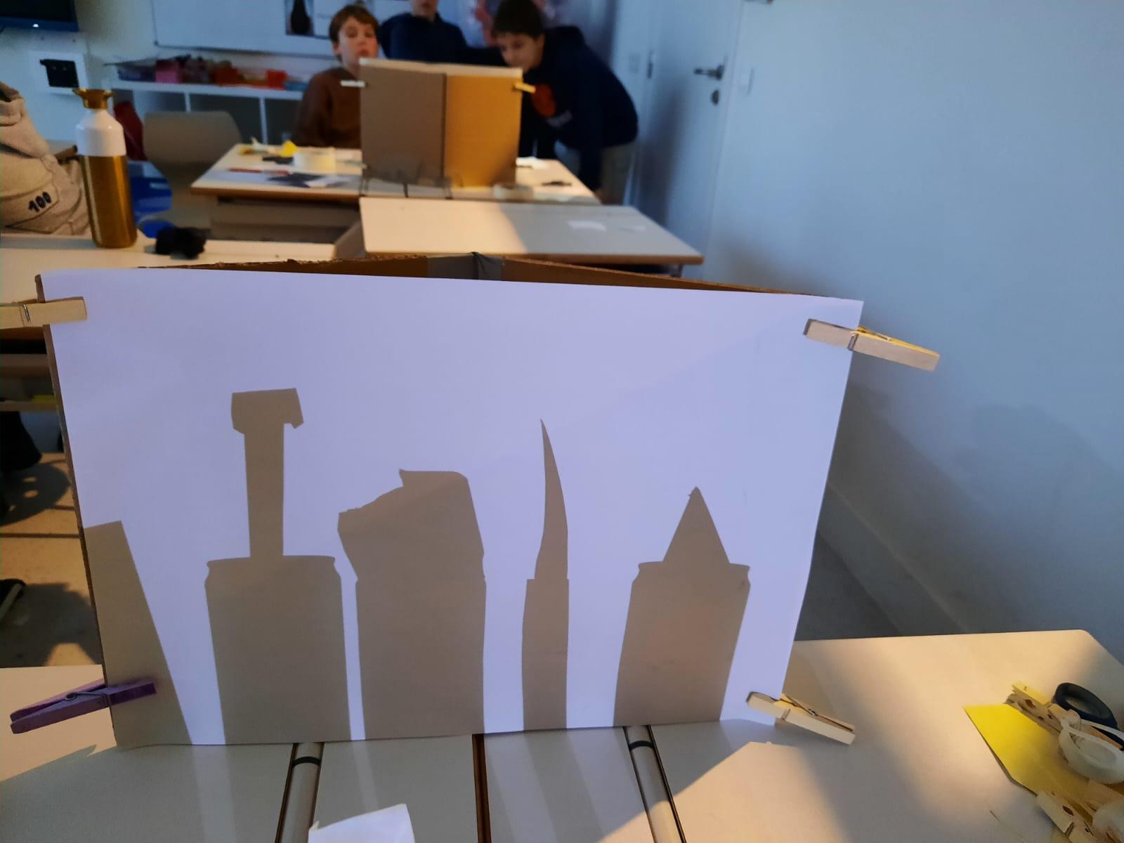 We ontdekken hoe schaduwen ontstaan en veranderen. Door te bewegen met een lichtbron en verschillende voorwerpen ervaren we hoe positie, afstand en lichtsterkte invloed hebben op de vorm en grootte van een schaduw. Het is was speelse en creatieve manier om wetenschap te beleven. We creëerden een skyline van een stad. Dit waren de resultaten.